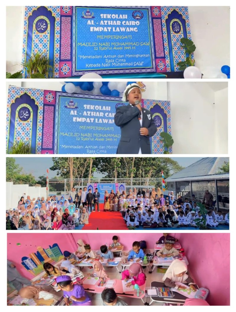 Dalam rangka memperingati hari Maulid Nabi Muhammad SAW 12 Rabiul Awal 1445 H dengan membentuk tema "Meneladani Akhlak dan Meningkatkan Rasa Cinta Kepada Nabi Muhammad SAW". Sekolah Al Azhar Cairo Empat Lawang mengadakan perlombaan yang diikuti dari tingkat TK, SD, SMP sdapun cabang perlombaan yang sediahkan yaitu lomba Mewarnai Tingkat TK, Fashion Show, Tahfidz, Solois, Azan, dan Nasyid.